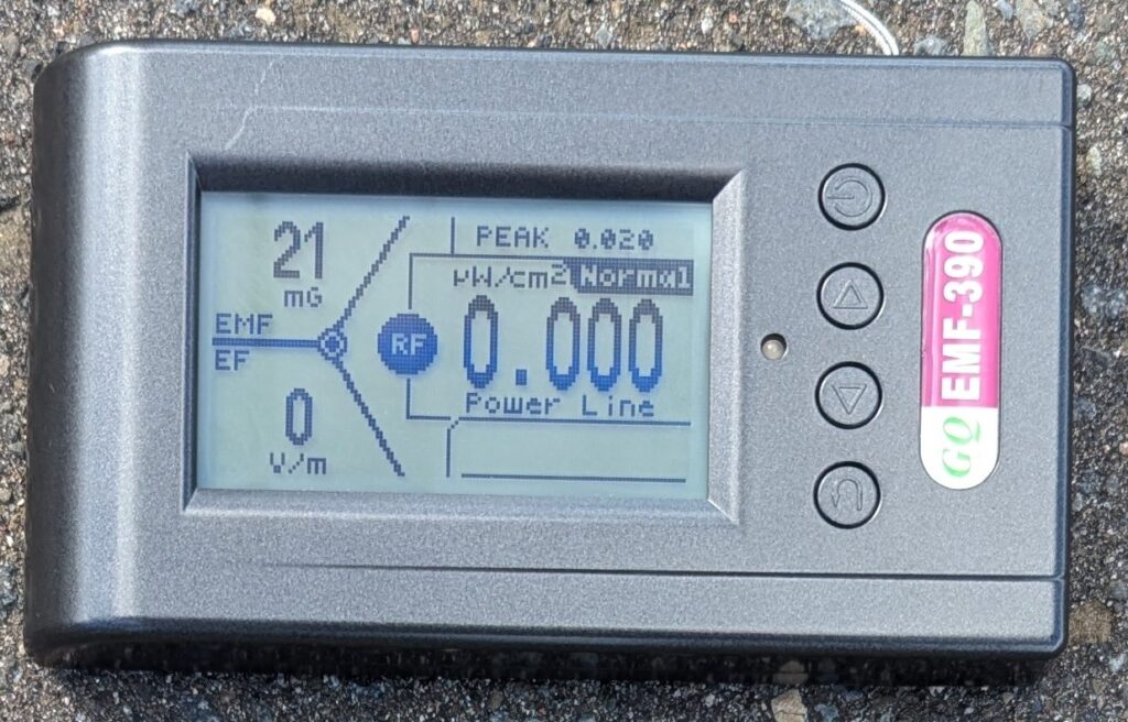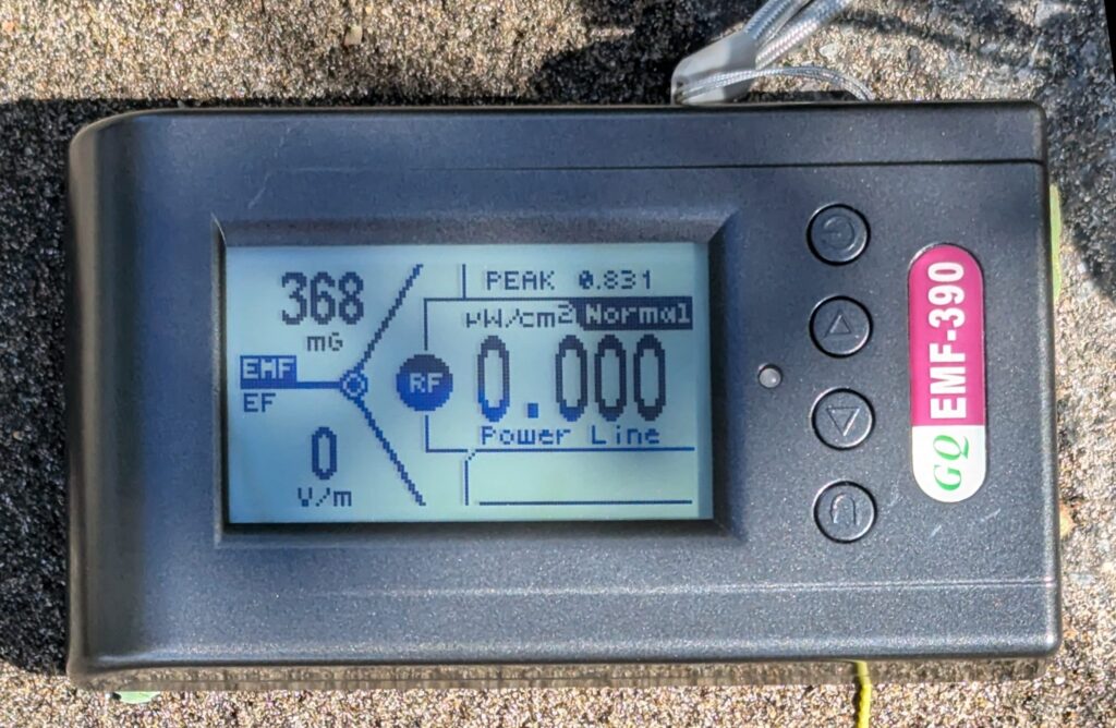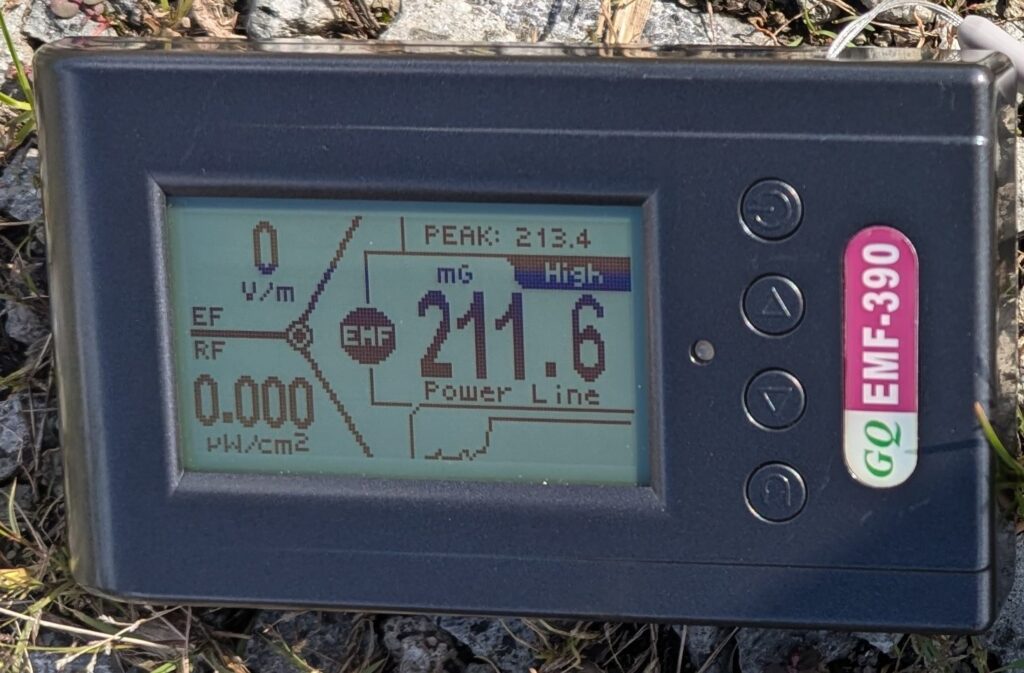 電磁波研の測定担当の鮎川哲也さんにこれらの数値を伝えました。鮎川さんによると、30μTという値はこれまでの測定で経験したことがないとのことです。2μTも、ACアダプターや分電盤のすぐ近くなど、明らかに高い場所以外では、数回した見たことがなく、変電所の近くでも4μTを超えたことはない、と驚いていました。