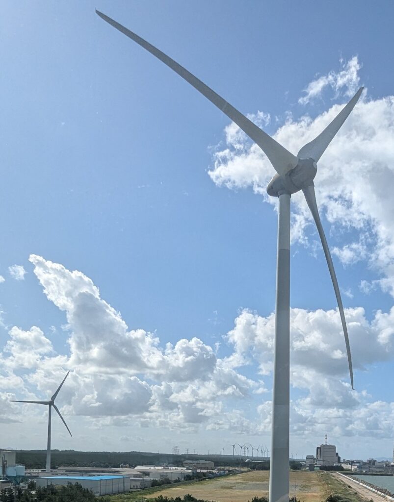 秋田県の風力発電量は2024年12月現在、北海道、青森県に次いで全国3位[7]。秋田県内の風力発電設備は2025年3月現在、20kW以上のもので陸上に307基、洋上に33基[8]ですが、小規模のものを含めると、その数倍以上になるのではないでしょうか。